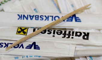 Die zeitgemäße Alternative: gehülste Zahnstocher mit ein- oder zweifarbigem Aufdruck!